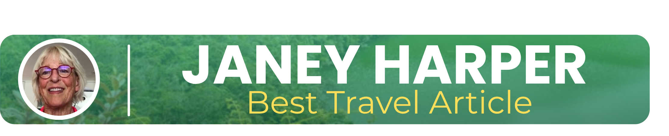 JANEY HARPER, BEST TRAVEL ARTICLE, for her piece on traveling to South America’s Colombia. Janey’s lively article gives us an insight into the spirit of this emerging nation and its people. In this interview she gives us some thoughts on the best ways she finds to learn an additional language. Also impressive is her adventurous streak in cycling and hiking all sorts of terrain. Congratulations, Janey on your PostScript Excellence Award!