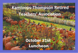 Kamloops-Thompson Retired Teachers’ Association October 31st Luncheon 31 Oct 11:30 am Cottonwood Seniors’ Activity Center 730 Cottonwood Ave